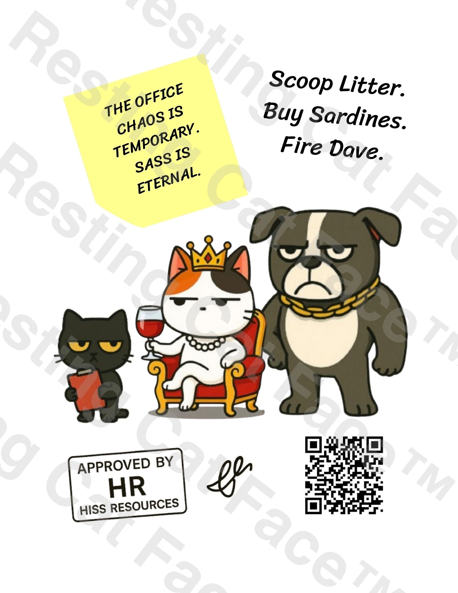 Welcome to the Resting Cat Face™ Universe, where productivity wears a crown and side-eye reigns supreme. Whether you're dodging a meeting, silently screaming through your task list, or plotting emotional revenge over coffee, this 17-month digital planner is your purr-sonal throne room of passive-aggressive power.
